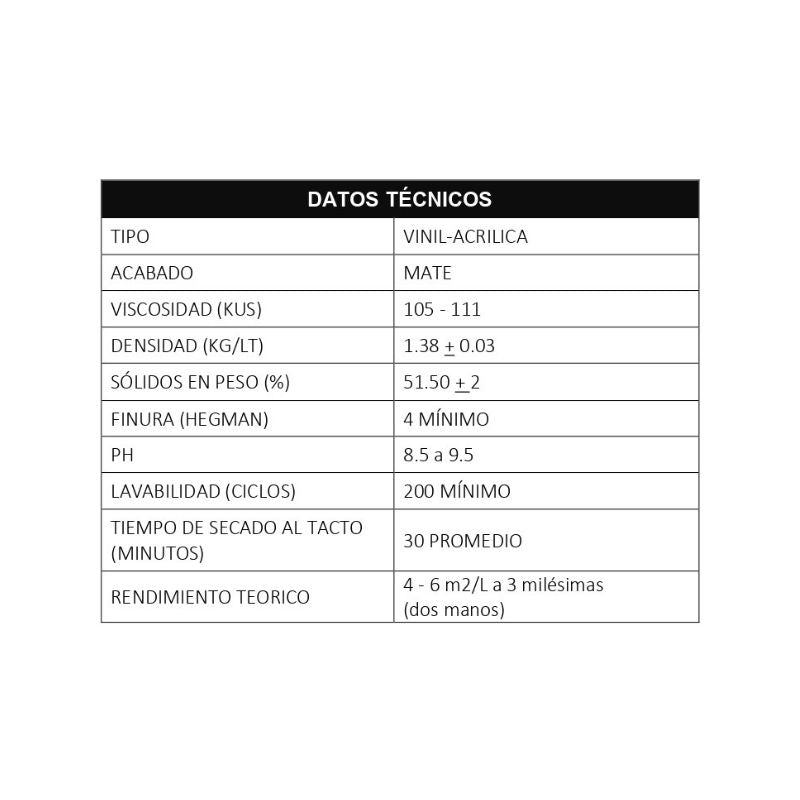 Pintura Vinil-Acrílica elaborada con materias primas de la más alta calidad de acabado mate.