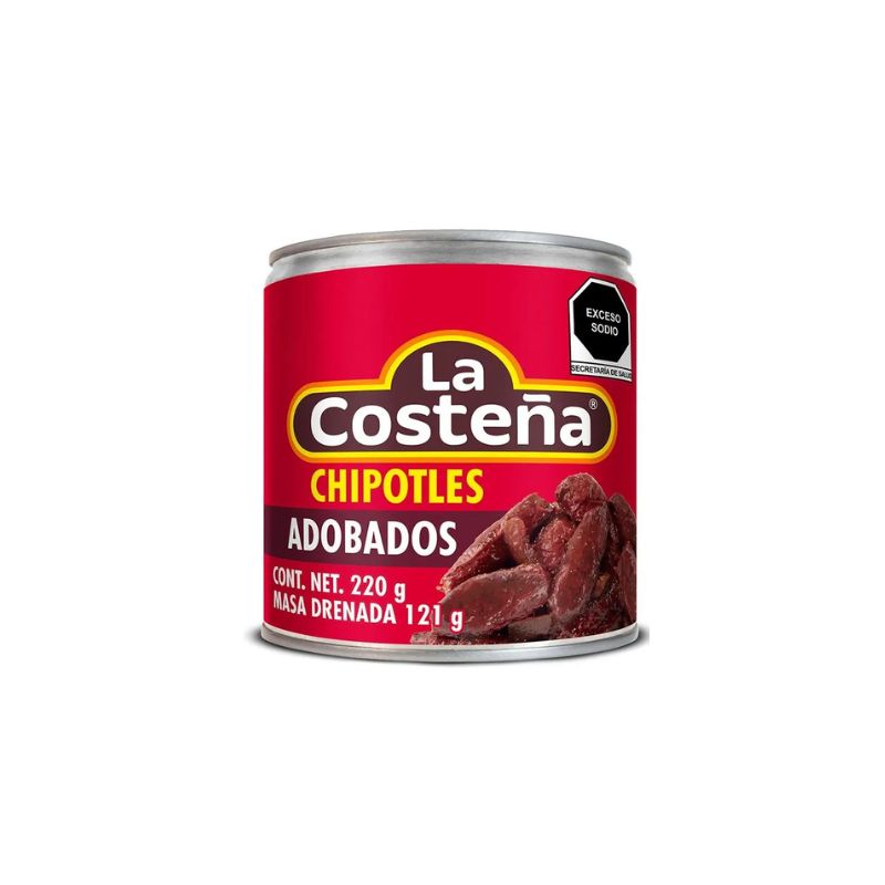 Los deliciosos chiles chipotles en adobo son elaborados totalmente sin conservadores, para garantizar el sabor inigualable que sólo La Costeña tiene para ti. Preparados con cebolla, pasta de tomate y vinagre, serán la opción perfecta para preparar unas tostadas de tinga de pollo.