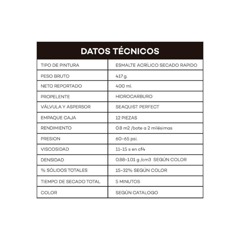 Esmalte de secado rápido a base de resina alquidal modificada con monómeros acrílicos.