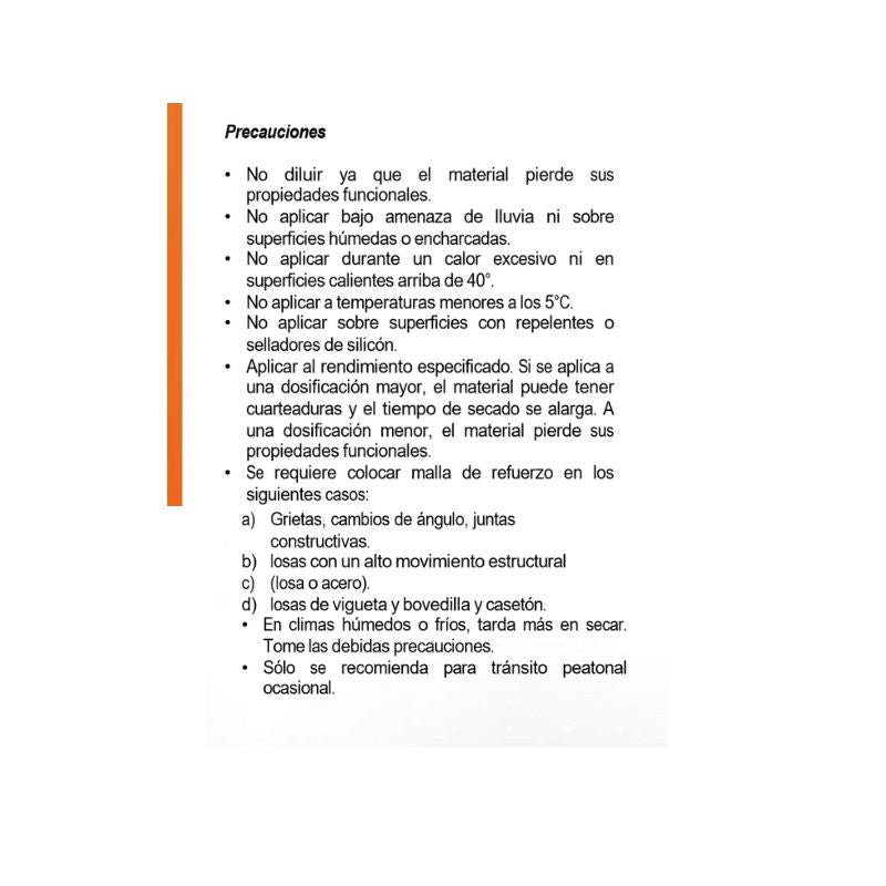 - Impermeabiliza en una sola mano: ayuda a ahorrar tiempo y costo en mano de obra.
