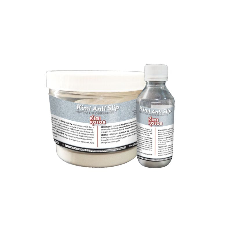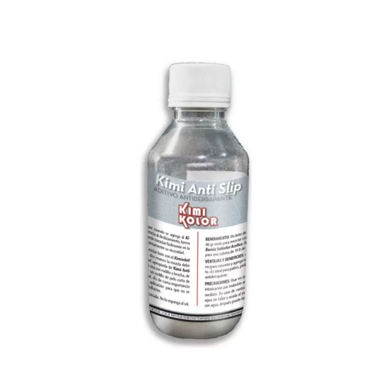 Kimi Anti Slip es un micro polímero que cuando se agrega al Kimiakril Barniz Sellador Acrílico Kimikolor crea resistencia al deslizamiento, forma texturizado fino y da una reducción sutil de brillo. Se puede mezclar fácilmente en la mayoría de los selladores decorativos disminuyendo mínimamente su viscosidad.