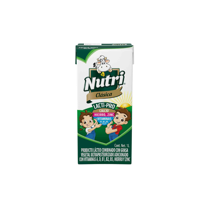 Nutri®, producto lácteo combinado con grasa vegetal, ultra pasteurizado adicionado con vitaminas A, D ,B1 ,B2 , B5, Hierro y Zinc. Para seguir nutriendo los logros de tu familia. Pruébala en nuestras diferentes presentaciones.