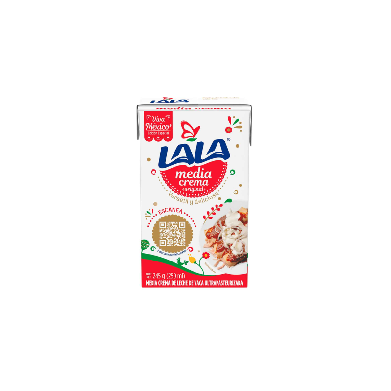 Si quieres darle sabor a cada uno de tus platillos, prueba la consistencia semilíquida de la deliciosa Media Crema Lala. Sorprende a tu familia con comidas sabrosas y consistentes. ¡Una buena opción para recetas dulces o saladas! Compra en línea de manera sencilla. Agrega a tu carrito lo que necesites y entregaremos tus productos hasta la puerta de tu hogar.