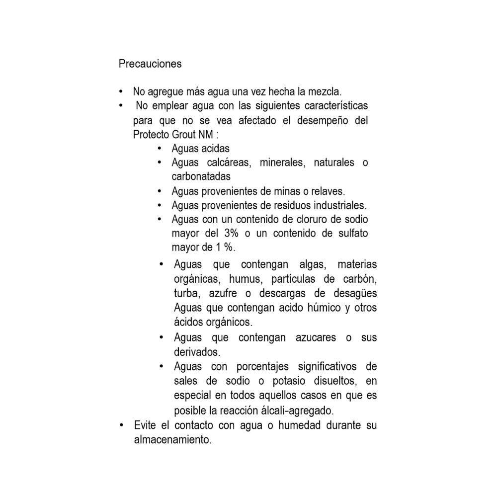 - Libre de contracción durante su fraguado, ya que presenta una expansión controlada.