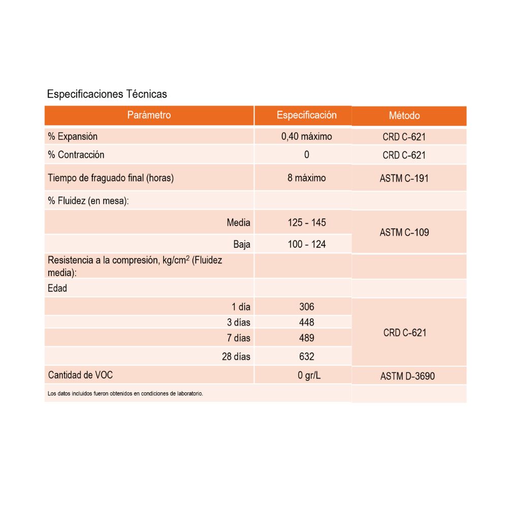 Es un mortero no metálico, estabilizado volumétricamente y libre de cloruros. Está formulado a base de agregados de sílice, cementantes y aditivos, que lo hacen libre de contracción durante la hidratación del cemento.