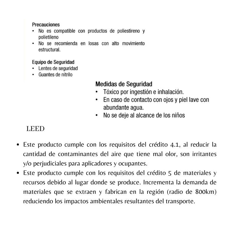 - Puede aplicarse sin riesgo de escurrimiento hasta temperaturas de 45°C.