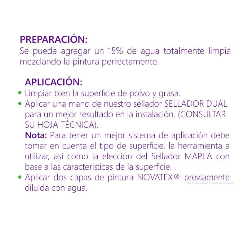 NOVATEX® es una pintura para interiores y exteriores de buena calidad. Está formulada con polímeros estiren-acrílicos de última generación y aditivos biodegradables.