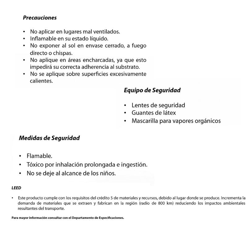 refinados, solventes de rápida evaporación y fibras de refuerzo, que le dan excelentes